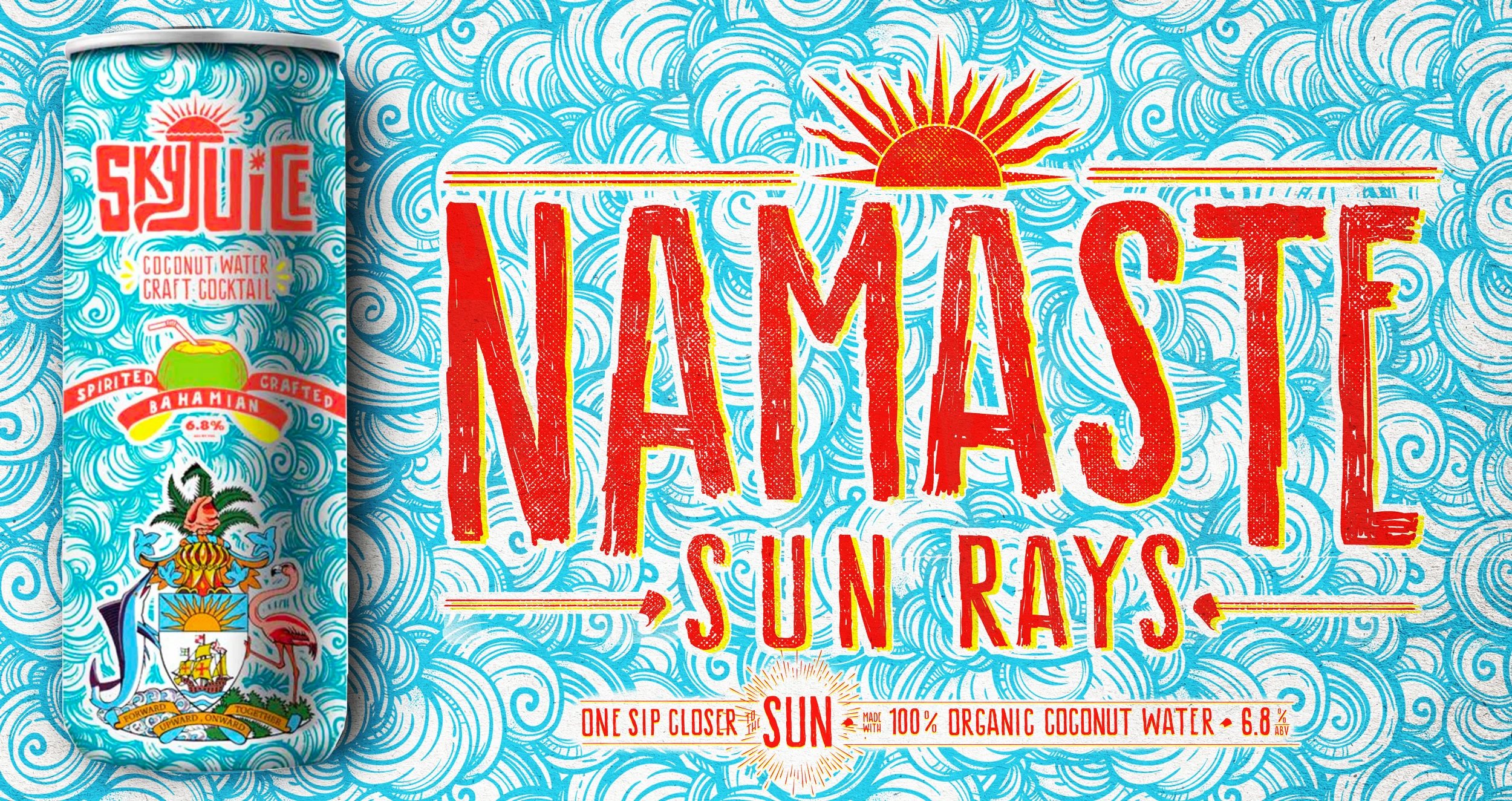 An upstart canned beverage company called Skyjuice needed a unique look. Logo. Can design. Vibes. So we decided it should feel like it had been around the beach — for a while. Hand-painted signs faded from the intense sun and sandpaper wind were found everywhere on the beach in Nassau. Which was a nod to it being traditionally served in a styrofoam cup on the side of beach roads. This feeling combined with the vivid and loud palette of Bahamian culture led us to create a brand identity that take you far from anywhere with Wi-fi.